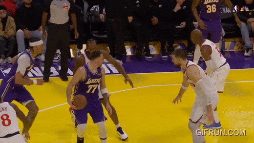 今天湖人有个套路重复出现:拉拉维亚背掩护变线内切,卢卡直点篮下,一个。