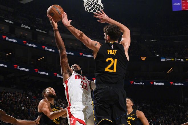 当然,这场比赛的基本盘还是篮板球优势。赛季至今,火箭队的篮板球一直是他们的赢球之匙,今天全队抢下了19个前场篮板,足足比勇士队多了17次进攻机会。对比之下,勇士队那边核心库里在高压限制下表现一般,半场只有8分3助攻3篮板。下半场库里也没能站出来带动球队,且最后2分钟时,库里还有一次关键的界外发球失误。加上最后的受伤,勇士队本场比赛可以说是赔了夫人又折兵。