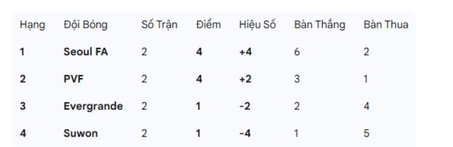 越南媒体给出了积分榜,首尔与PVF都是4分,但首尔第二轮4球完胜的水原,因此排名榜首。恒大和水原都是1分,净胜球都是负。末轮,恒大U18遇到水原U18,首尔U18则面对越南U18PVF队。